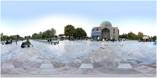نمونه عکس پانوراما تمام 360 درجه کروی (ایران، مشهد، آرامگاه خواجه ربیع) به طوریکه شما قادر به مشاهده بالا سر و پایین میدان دید خواهید بود- نسخه تعاملی تصویر را از طریق لینک زیر می توانید مشاهده کنید لینک